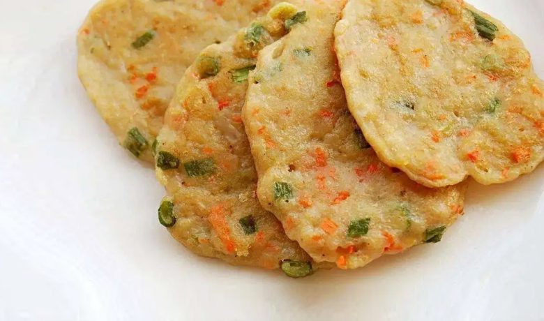 鱼饼又叫炸鱼饼,是将已经打制好的鱼丸浆加上适量面粉,尾细碎丁、鸡蛋全蛋液,再次搅拌均匀后,入六成热的油锅中油炸,至外皮色泽金黄时捞出。有的还在鱼饼浆中加入少量肉糜,制成有鱼馅鱼饼,风味殊异。