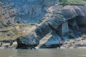金刚腿位于闽江下游福州长乐区航城的石龙山峭壁之下。它是一条从山麓一直伸到江面的花岗条岩,形如金刚…